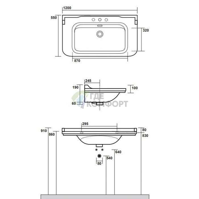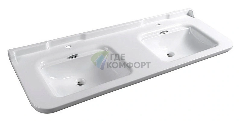 Размеры раковины - 120 см в ширину и 55 см в глубину. Это модель для просторных ванных комнат. Перед покупкой замерьте вашу тумбу или столешницу: необходимо, чтобы их ширина была не менее 120 см, а глубина позволяла комфортно разместить чашу.
