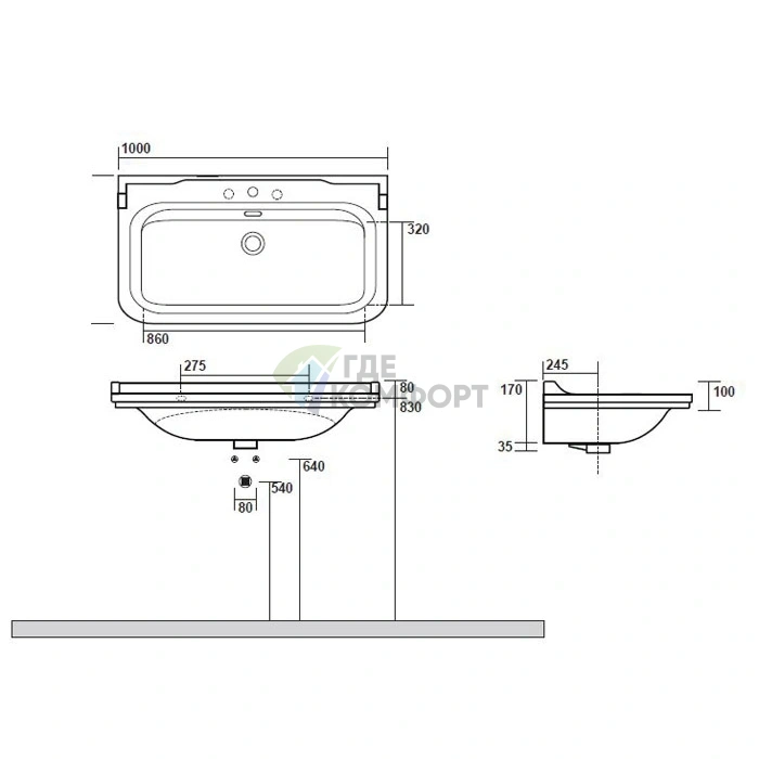 Раковина Waldorf предназначена для накладного (Top-mount) монтажа. Она устанавливается сверху на подготовленную столешницу, а ее бортик надежно перекрывает края посадочного отверстия. Это классический и надежный способ установки.