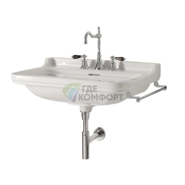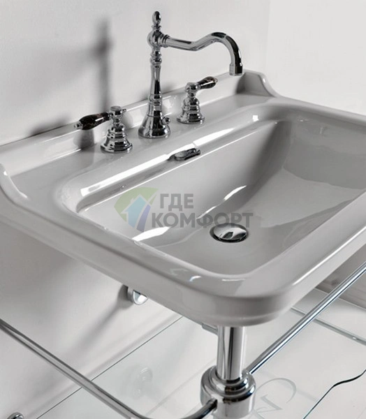Kerasan Waldorf - это крупноформатная керамическая раковина для ванной комнаты с элегантным дизайном и одним отверстием под смеситель. Стандартная комплектация включает только сифон. Смеситель, крепеж и переливную арматуру необходимо покупать отдельно, что позволяет выбрать модель под ваш стиль.