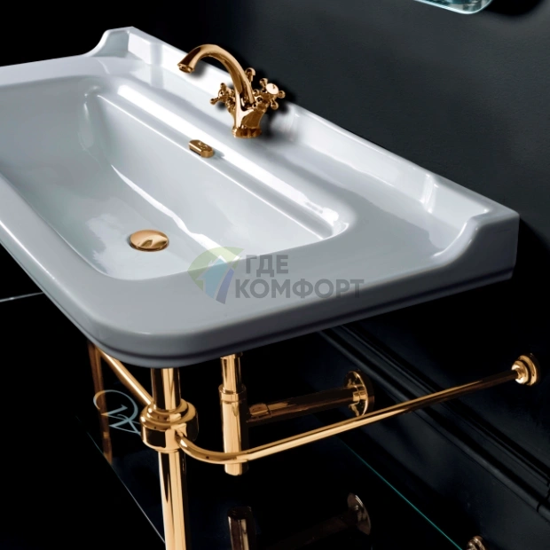 Раковина Kerasan Waldorf керамическая 120х55см c 1 отверстием под смеситель белая цвет заглушки-золото