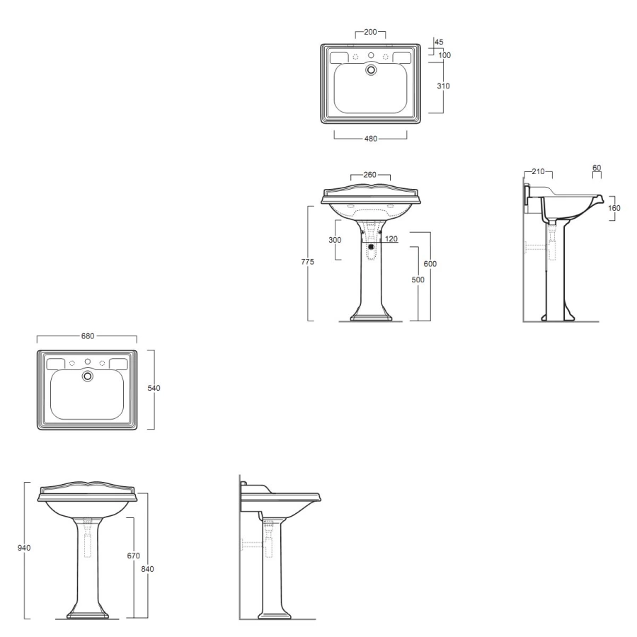 Раковина SIMAS Arcade 68 со спинкой 68x54 см, белая, с пьедесталом