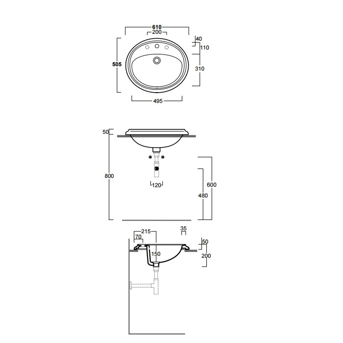 - Комплектация: три стандартных подготовленных отверстия для установки смесителя и аксессуаров.