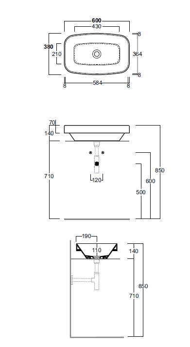 - Габаритные размеры 60x38 см: Оптимальная глубина и ширина для комфортного использования, подходит для установки в узкие тумбы и компактные санузлы.