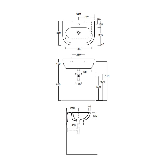 - Проверьте соответствие габаритов (650x480 мм) подготовленному месту в вашей мебели или на стене.