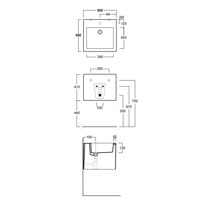 Раковина совместима с любыми однорычажными смесителями с посадочным диаметром 35 мм (стандарт 3.5"). Для монтажа используется стандартный сифон 1 ¼ дюйма. Рекомендуемая толщина столешницы для врезки - от 28 до 40 мм. К мойке прилагается комплект для установки.