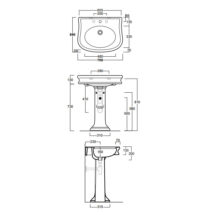 - Габаритные размеры (ДxШxВ): 70 x 54 x 13 см — оптимальная ширина для удобного умывания.