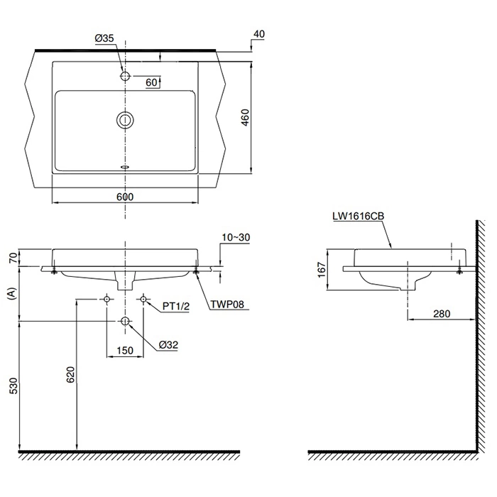 - Габаритные размеры: 600 мм (длина) × 460 мм (ширина) × 150 мм (глубина чаши).