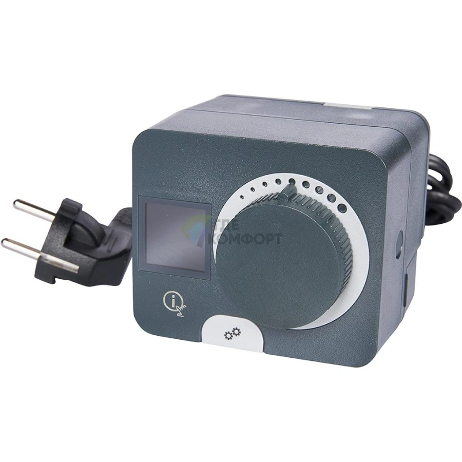 - Встроенный программируемый термостат с диапазоном от +5°C до +90°C. Настройка режимов работы через простое меню.