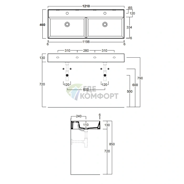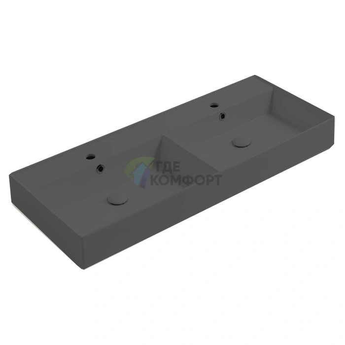 Изделие изготовлено из высококачественного искусственного гранита. Этот материал не только придает благородный матовый вид, но и обладает важными эксплуатационными свойствами. Поверхность устойчива к царапинам, бытовой химии и ежедневному износу. Размер 121x46 см оптимален для размещения над тумбой или в нише, обеспечивая достаточно рабочего пространства вокруг двух чаш.
