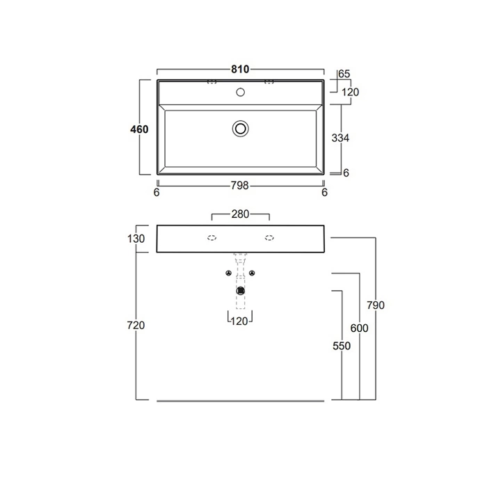 Для монтажа этой подвесной раковины необходима прочная капитальная стена или надежный каркас из металлических профилей. Заранее определитесь с типом и моделью смесителя, чтобы подготовить все необходимые подключения. Крупная чаша размером 81x46 см обеспечивает комфортное пользование и подходит для просторных ванных комнат.
