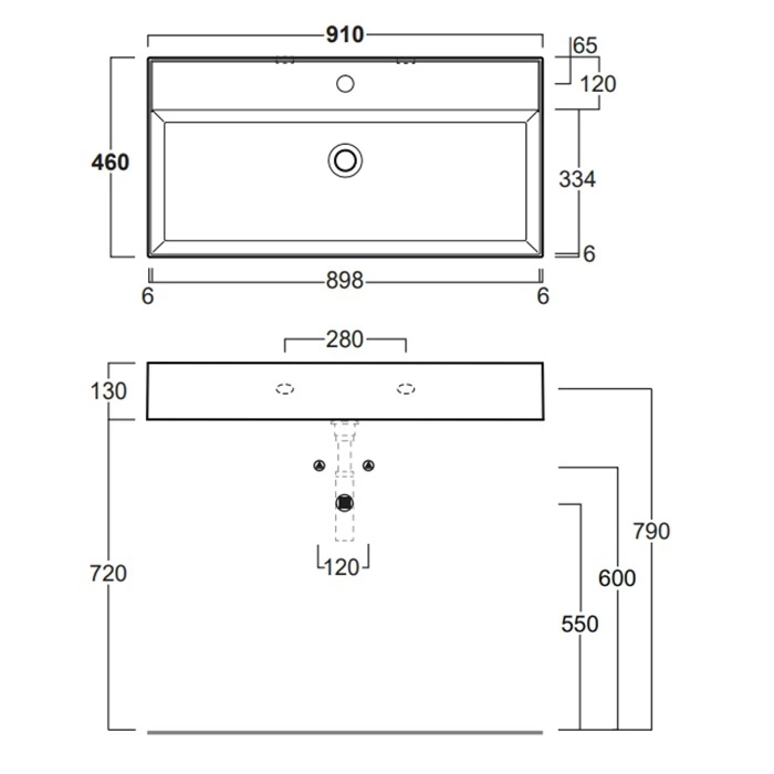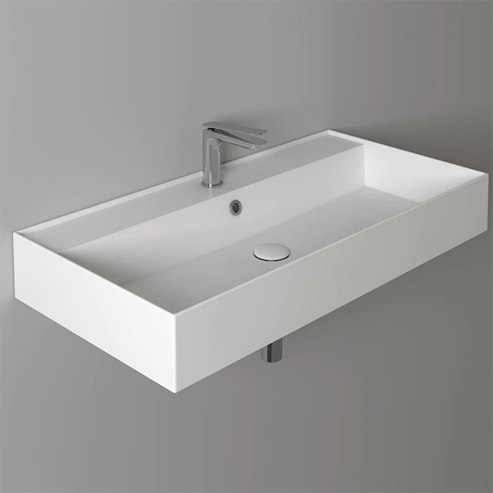 - Конструкция: Цельная подвесная чаша со встроенным переливом и штатным отверстием под смеситель.