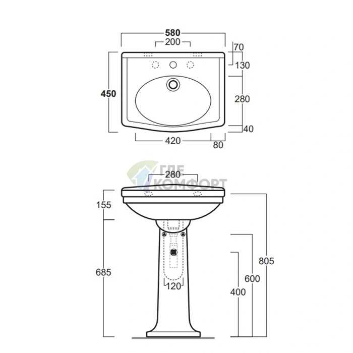 Раковина SIMAS Londra 58x45 см с отверстием под смеситель, белая