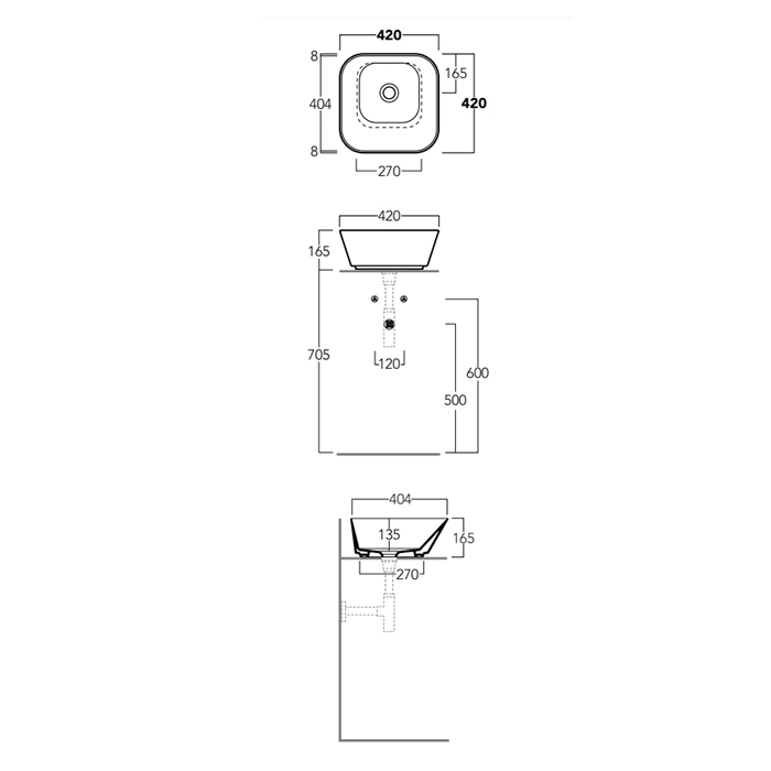 Скошенная к центру форма чаши обеспечивает быстрый и чистый слив воды. Широкая плоская кромка по периметру позволяет удобно размещать гигиенические принадлежности. Монтаж выполняется путем врезки в подготовленное отверстие в столешнице с последующей фиксацией на монтажные скобы и герметизацию.