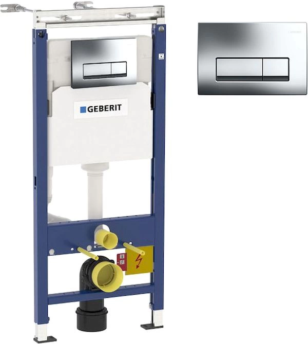 Система скрытого монтажа Geberit Duofix Plat‑tenbau с кнопкой смыва представляет собой готовое инженерное решение «4 в 1» для современных санузлов. Она объединяет несущий каркас, бачок, механизм смыва и панель кнопок в единый, технологичный блок.