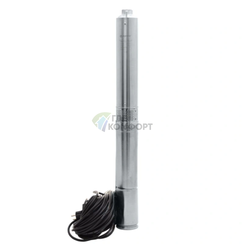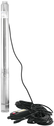 - Надежная работа на большой глубине: Конструкция из нержавеющей стали AISI 304 и латунного диффузора устойчива к коррозии и давлению, что позволяет использовать насос в скважинах диаметром от 100 мм.