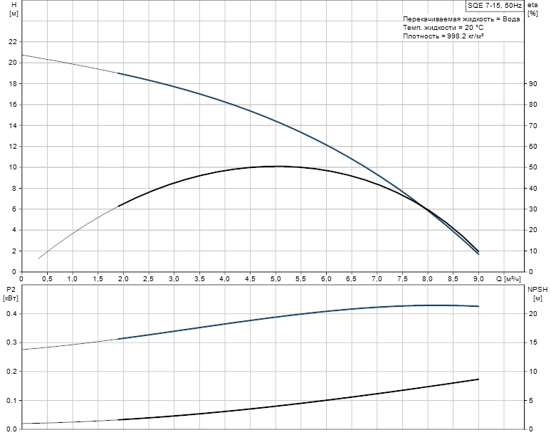 Насос Grundfos SQE 7-15 предназначен для работы в пресной воде без абразивных примесей. Допустимая температура перекачиваемой среды — от 0°C до +40°C. Для подключения требуется трехфазная сеть 3x400 В. Агрегат необходимо устанавливать на глубине не менее 1 метра от динамического уровня воды в скважине.