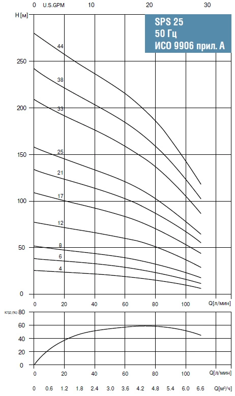 Waterstry SPS 2533 оптимален для скважин глубиной до 200 метров. Максимальный напор в 250 метров позволяет компенсировать гидравлические потери в горизонтальных участках труб.