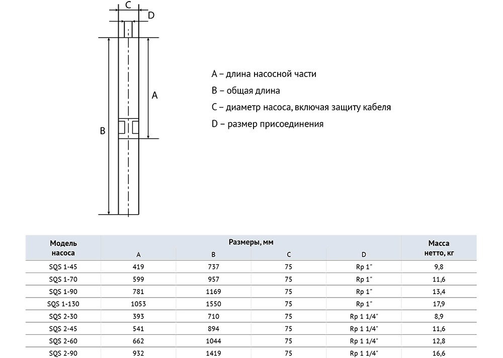 Технические особенности насоса SQS 2-60-0.75kW