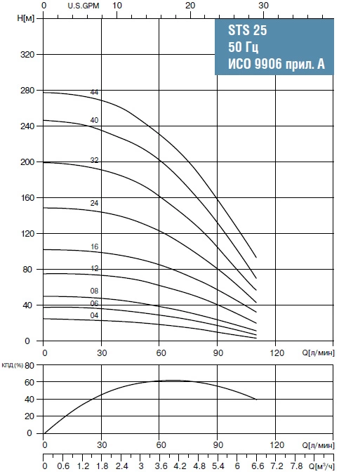 Технические параметры скважинного насоса STS 2516