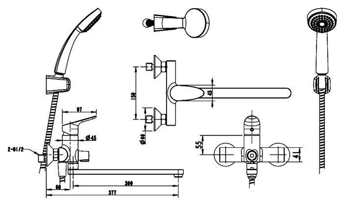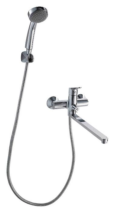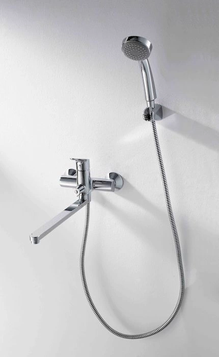 Смеситель для ванны с душем поставляется в полной комплектации для стандартного монтажа. Вам не придётся докупать эксцентрики, шланги или другие расходники. Прочная латунная конструкция с покрытием против известкового налёта не требует специального ухода.