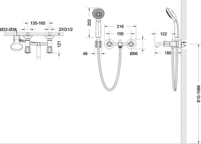 Двухрежимный настенный смеситель для полноценного оснащения ванной комнаты. Модель предназначена для комфортного наполнения чаши ванны и принятия душа, объединяя функциональность и лаконичный дизайн в одном решении.