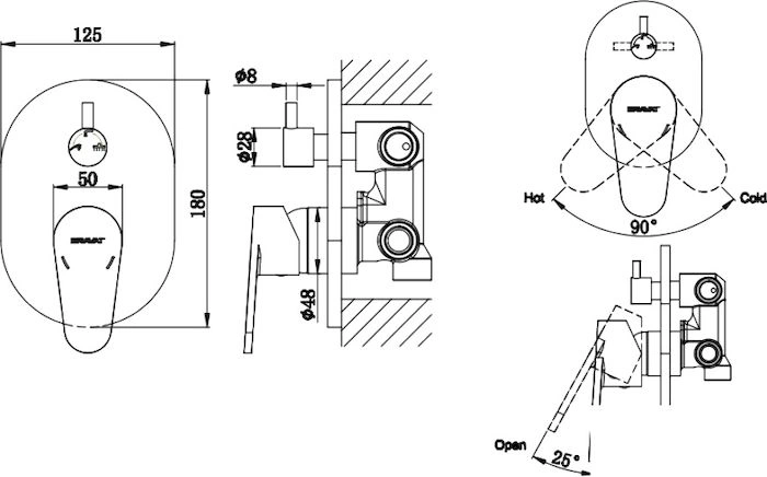 Встраиваемый смеситель Bravat Eler FB848238CP-3-RUS с тремя функциями управления