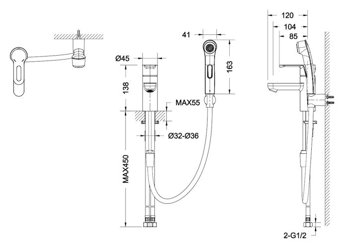 - Гигиенический душ с длинным гибким шлангом, размещенный в удобном боковом держателе.