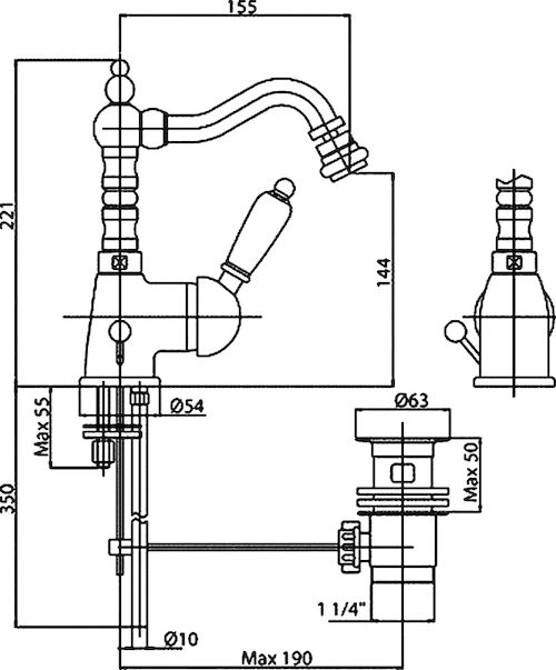 - Материал: латунь, хромированное покрытие.