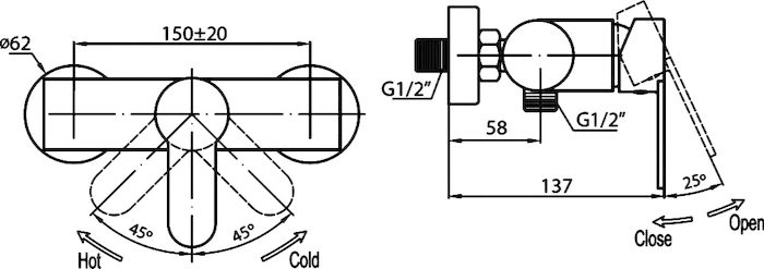 Конструкция смесителя продумана для удобного размещения в стандартной душевой кабине или над ванной. Компактные размеры и стандартное межосевое расстояние позволяют выполнить быстрый монтаж.