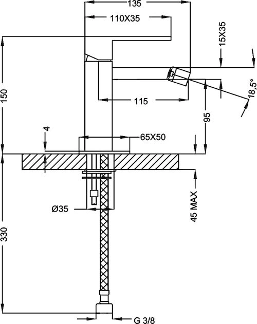 - Универсальное присоединение с резьбой 1/2” подходит для большинства стандартных подводок воды.