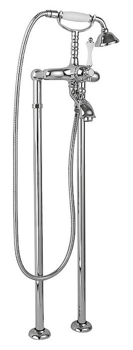 Классический напольный смеситель для оснащения ванной комнаты, где требуется отдельная установка без привязки к раковине.