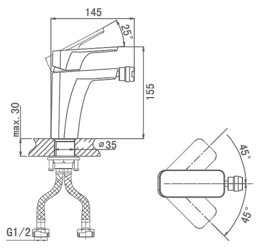 - Простой монтаж и совместимость: Стандартное межосевое расстояние 102 мм и комплектная эксцентриковая подводка упрощают установку на большинство моделей биде.