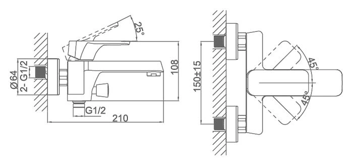 - Высокий поворотный излив обеспечивает удобный набор воды в глубокую ванну или ведро.