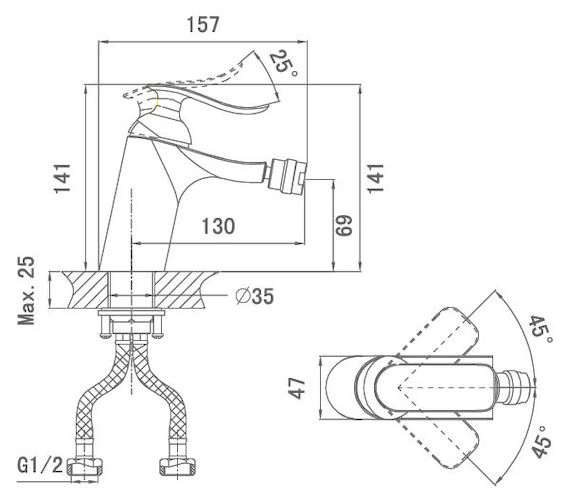 Смеситель для биде D K Liszt Bayern DA1232201 с вертикальным монтажом из латуни