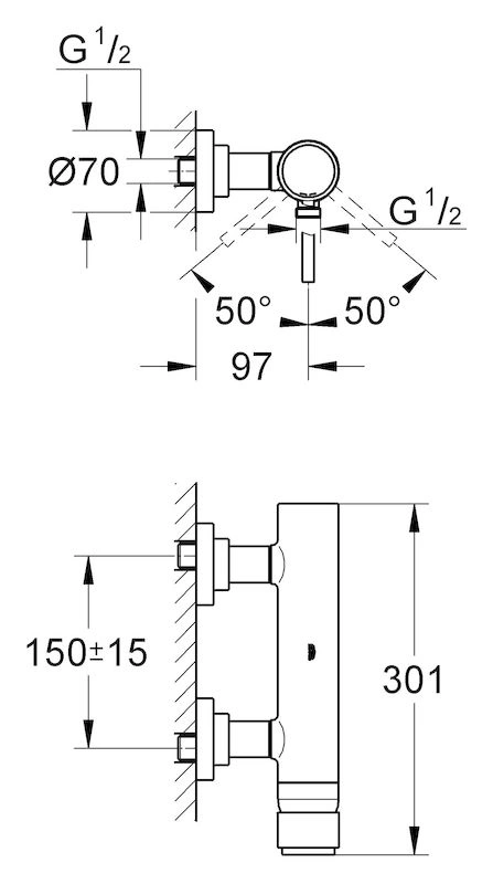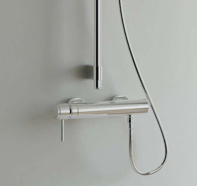 Модель предназначена для настенного монтажа. Это классическое и надежное решение, которое требует предварительной подготовки скрытой инсталляции или монтажной коробки. Смеситель поставляется в комплекте с верхним изливом для лейки душа, что позволяет организовать душ с фиксированной верхней струей.