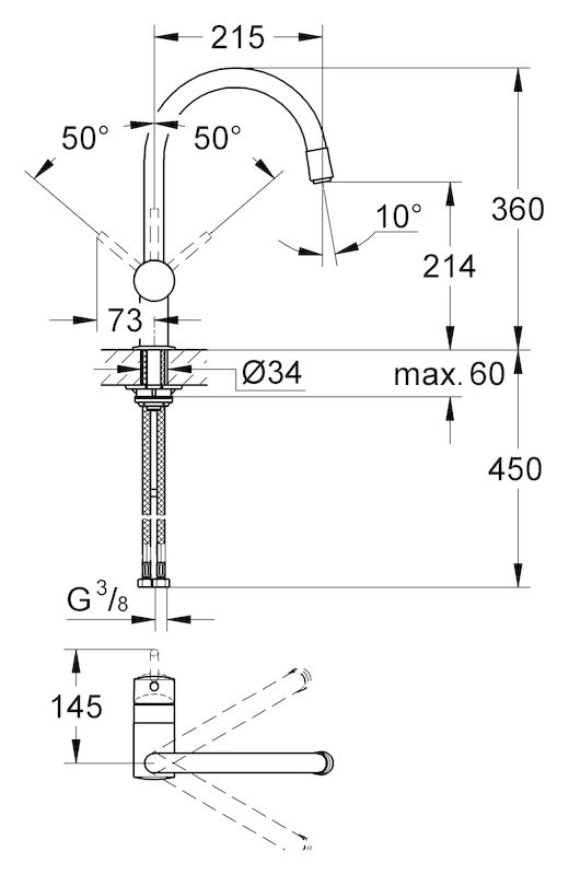 Смеситель Grohe Minta для кухни: настенный монтаж