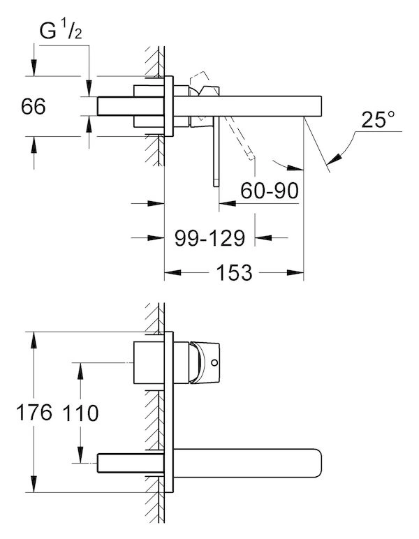 Смеситель Grohe Quadra 33007001 для раковины настенный однорычажный с хромированным покрытием