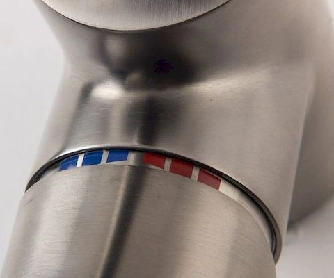 - Рычаг управления с понятной индикацией температуры позволяет быстро и точно настроить поток воды.
