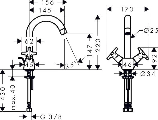Смеситель Hansgrohe Logis Classic имеет стандартное межосевое расстояние (расстояние между центрами вентилей) - 102 мм. Это самый распространенный стандарт. Также важно, чтобы диаметр монтажного отверстия был не менее 32 мм. Перед покупкой измерьте расстояние между центрами отверстий под смеситель на вашей раковине или столешнице.