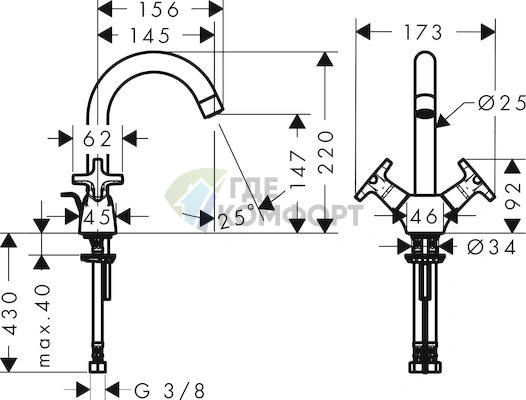 - Эргономичные рукоятки: Маховики с четкой маркировкой горячей и холодной воды удобно лежат в руке, а их классический дизайн легко впишется в любую сантехническую арматуру.