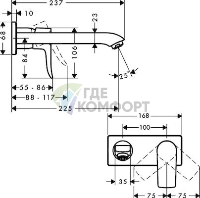 Модель Hansgrohe Metris 31086000 - это настенный смеситель, предназначенный для установки на раковину или мойку. Он идеально подходит для стандартных раковин в ванной комнате с тремя монтажными отверстиями (для смесителя, рычагов переключения воды и носика) или для использования с соответствующей планкой.