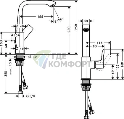 Hansgrohe Metris 31087000 - это однорычажный настольный смеситель. Он предназначен для монтажа в подготовленное отверстие на раковине или столешнице. Стандартный диаметр монтажного отверстия - 35 мм.