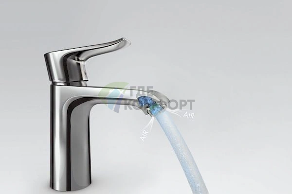 Смеситель Hansgrohe Metris 31088000 оснащен аэратором с технологией EcoSmart, которая ограничивает поток воды примерно до 5 литров в минуту, обеспечивая эффективное использование воды без потери комфорта.