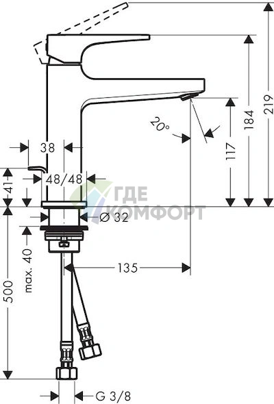 Этот смеситель предназначен для установки на раковину или столешницу с одним монтажным отверстием. Он подходит для стандартных раковин с одним отверстием диаметром 35 мм.