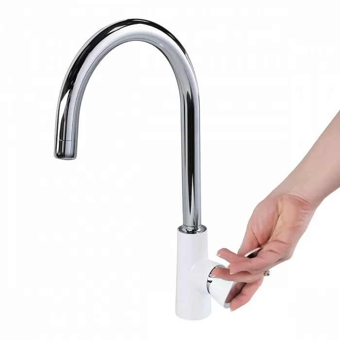 - Беспружинный механизм уборки обеспечивает плавное и надежное возвращение излива в исходное положение.