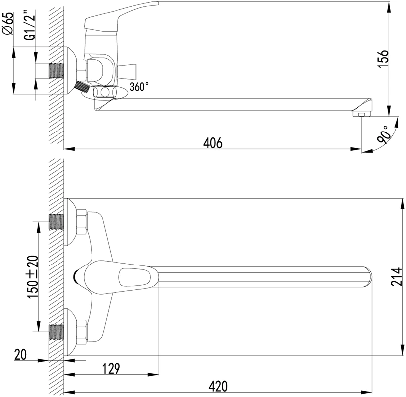 - Поворот излива: 140°