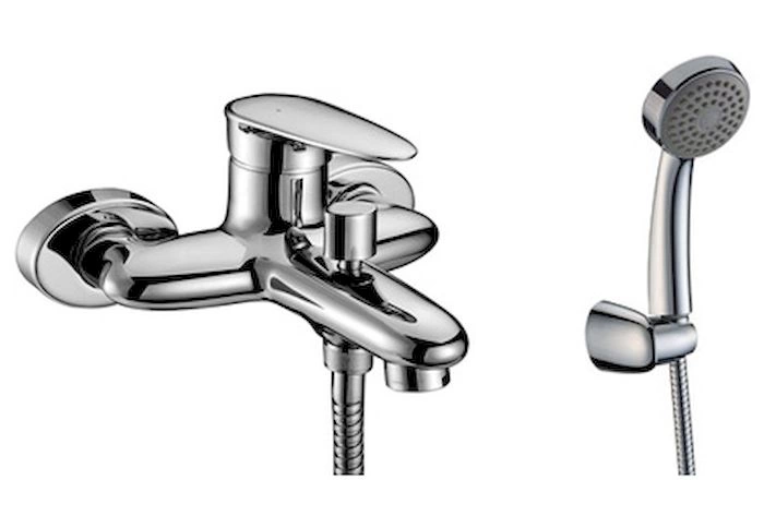 В полный комплект входит все необходимое для установки: сам смеситель для ванны с душем, душевая лейка, гибкий шланг для душа, эксцентрики для подключения к водопроводу и декоративные накладки. Вам потребуется приобрести только инструмент для монтажа.