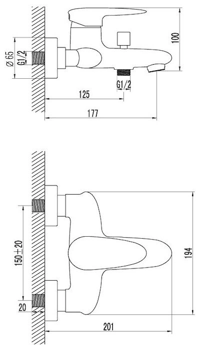 Смеситель Lemark Status LM4402C является универсальным настенным и подходит для большинства стандартных ванн и душевых кабин. Стандартное межосевое расстояние для подключения - 150 мм.