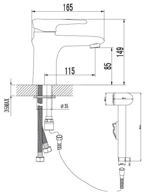- Длина гибкого шланга гигиенического душа: достаточная для комфортного использования.