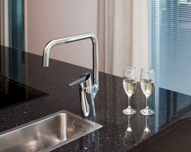 Этот кухонный смеситель отличается продуманной эргономикой и надежностью. Высокий излив обеспечивает комфортную мойку крупной посуды и наполнение высоких кастрюль. Плавное движение одного рычага позволяет одной рукой легко и точно настроить нужную температуру и силу потока воды.
